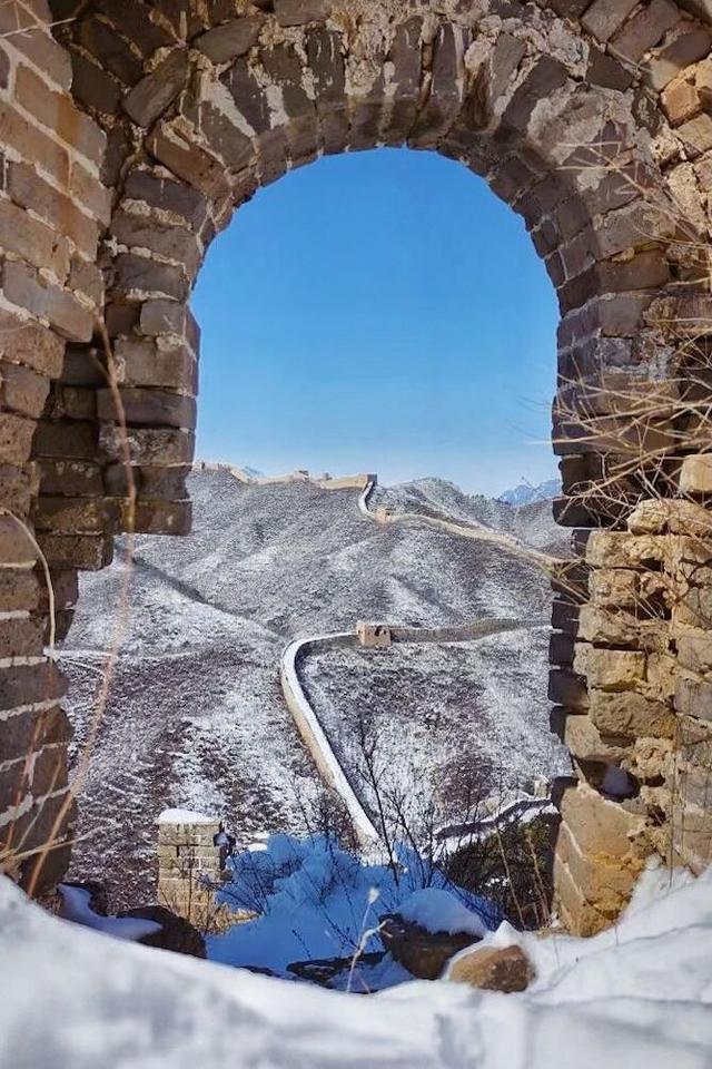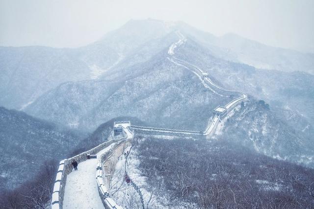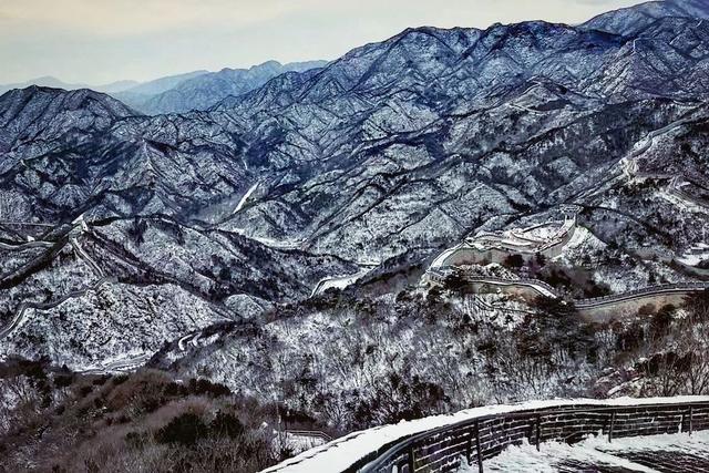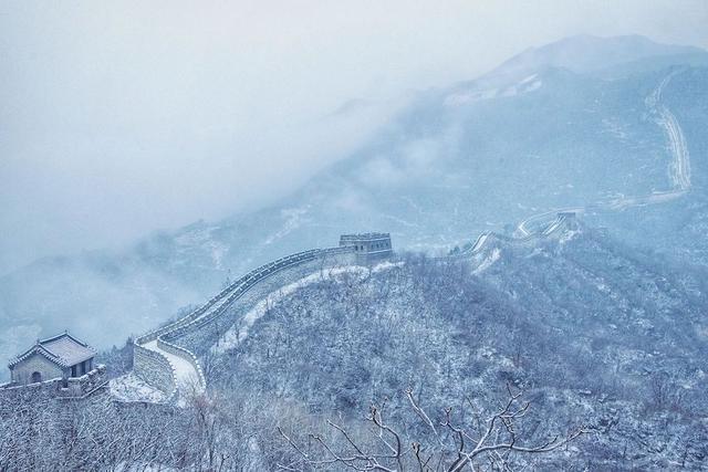 雪落无声,消散了焰火台的斑驳,却盖不住长城的脊梁。群山白头,巨龙静卧,这是独属于长城冬日的飘渺与壮阔。
