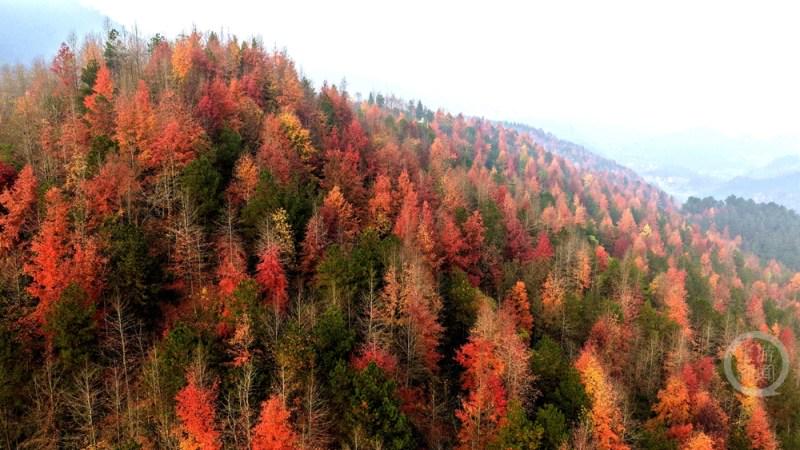 当地彩林以枫香、乌桕等为主,面积近千亩。